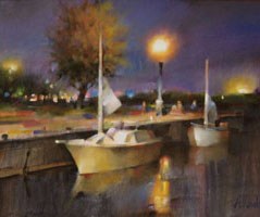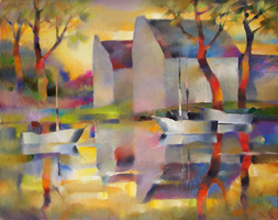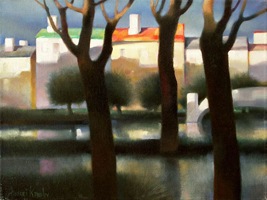 То, что сказано о серии “Очертания Музыки” может быть отнесено во многом и к серии “Свет и Тени”. Ритмы, пропорции, восходящие, нисходящие и эллиптические движения, контрасты холодного и тёплого, приглушённого и яркого, мягкого и острого – в целом, тот же набор “инструментов”. Только сюжеты здесь иные, а сложносоставность словесно-пространственного континуума менее очевидна. Небольшие искажения в геометрии пространства намекает на присутствие иных измерений, а лёгкая размытость очертаний говорит о неостановивом движении, точнее - о дыхании жизни. Строго говоря, объекты и сюжеты имеют второстепенное значение. Свет – главный герой в моих работах. Я редко пишу с натуры или пользуюсь фотографией. Просто увиденное приношу с собой в мастерскую. Россия, Латвия, Канада. Дни и ночи, свет и тени. ................................................................................ Basically, what has been said about “Shapes of Music” series can be addressed to the “Lights and Shadows” series. Rhythm, proportions, acceding, descending and elliptical movements, contrasts of warm and cold, dark and light, soft and sharp - this is the same set of visual “tools” as in the musical series, only the subjects are different, the tones are less saturated and the Objects and subjects are actually secondary, the light is the main “hero” of all these paintings. |